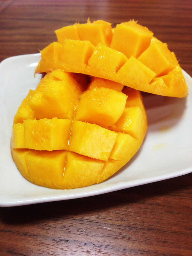 生で食べるのはもちろん、プリンやアイスなどにしても美味しいです。 今回は生で食べる際に食べやすい切り方のご紹介にしてい マンゴーの細い部分を立てて置きます。 中心1cm幅に大きな幅の種が入っています。 ②真ん中の種を切らないようにしながら、種にそって3.